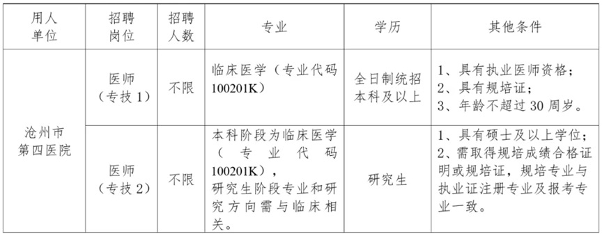 [医护] 沧州市第四医院2025年招聘卫生专业技术人员公告