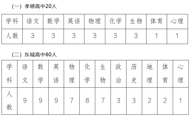 为满足孝感高中、东城高中教育教学工作和为东城高中储备人才的需要,经报请市委人才办同意,学校研究决定,现面向全国引进优秀教师,具体条件如下。