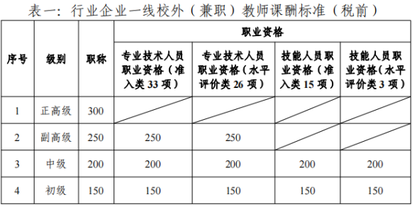 1.专业技术人员职业资格、技能人员职业资格,以《国家职业资格目录 2021 年版》为准。专业技术人员职业资格,未明确等级的,执行“副高级”课酬标准;明确了等级的,最高等级对应“副高级”课酬标准。技能人员职业资格,未明确等级的,执行“中级”课酬标准;明确了等级的,最高等级对应“中级”课酬标准。