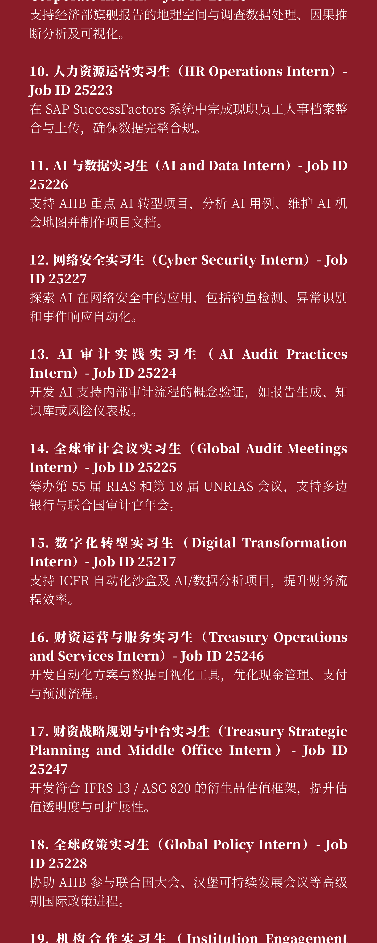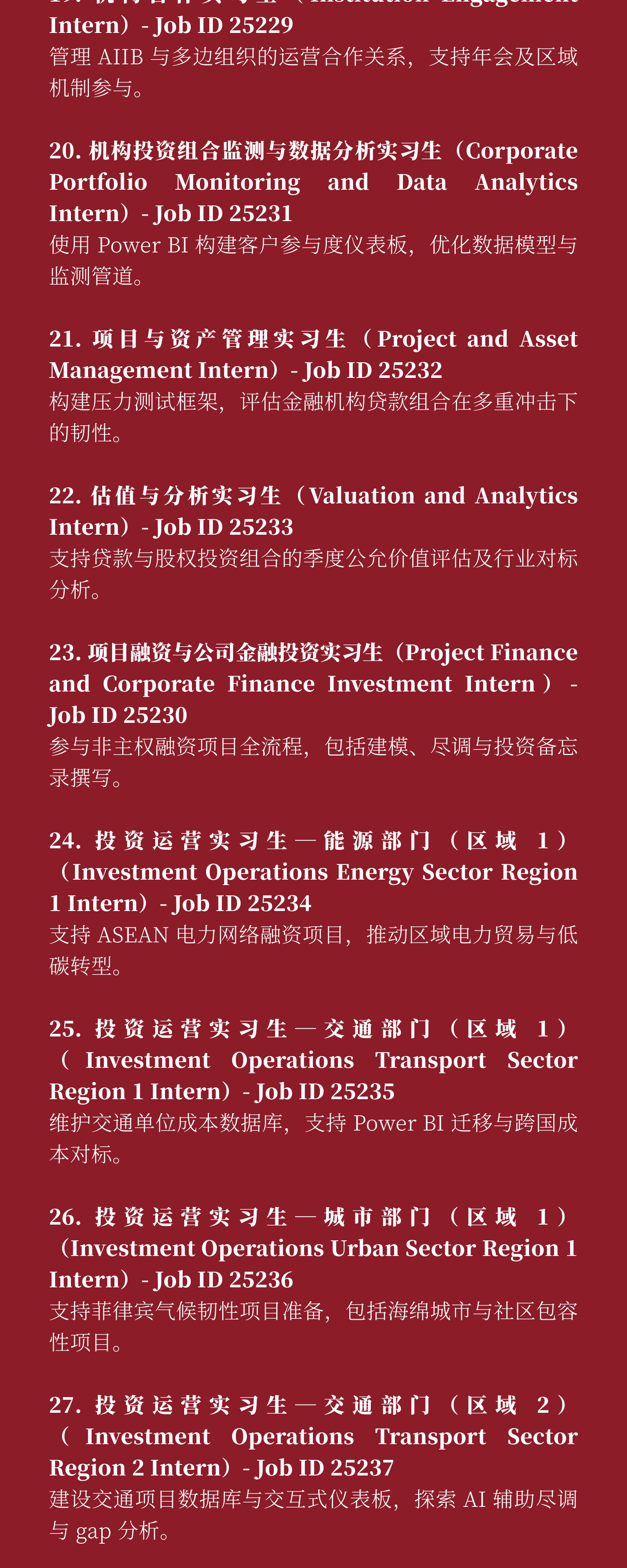 [实习生] 2026亚投行 (AIIB) 全球实习项目 (GIP) 招募