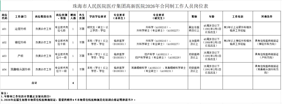 附件1:珠海市人民医院医疗集团高新医院2026年合同制工作人员岗位表.xlsx