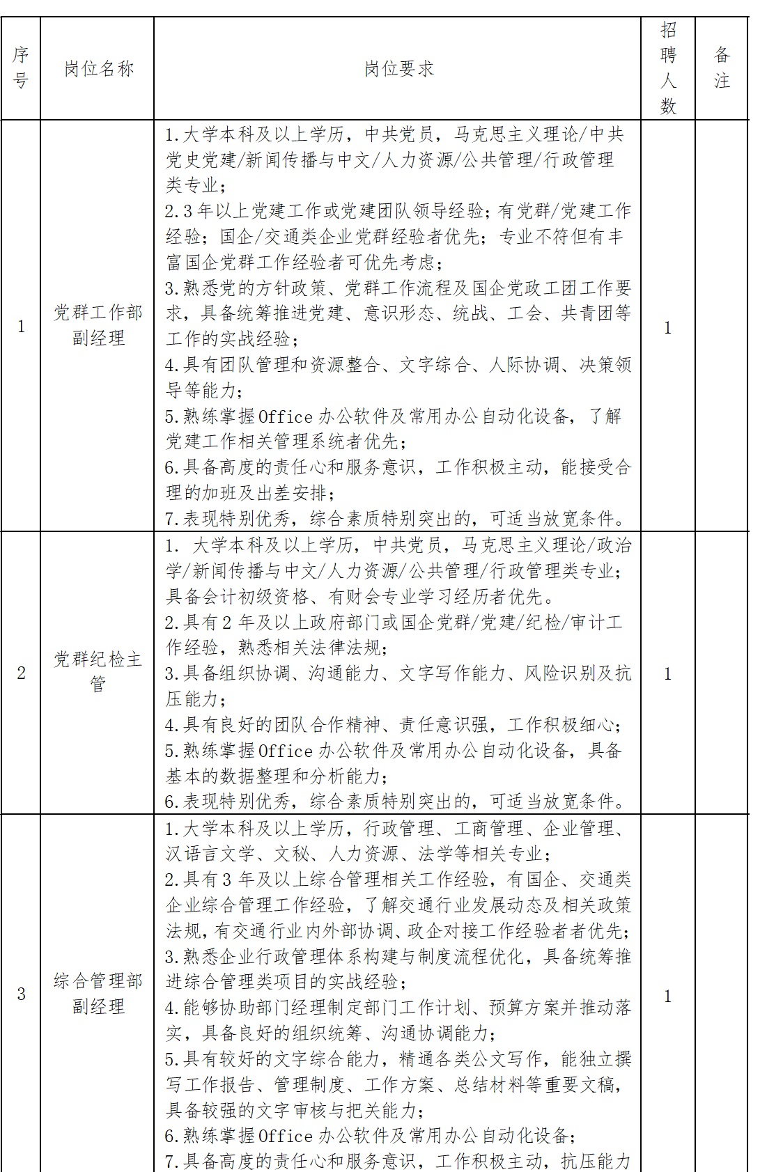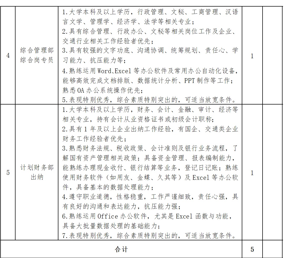 附件1:儋州市交通运输集团有限公司招聘岗位及任职要求明细表