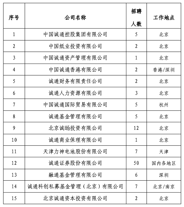 作为国有资本运营公司,中国诚通聚焦“提高国有资本配置和运行效率”新使命,立足“国有资本流动重组、布局调整的市场化运作专业平台”新定位,锚定“服务国家战略、服务国资央企”主方向,通过基金投资、股权运作、资产管理、金融服务和战略性新兴产业培育助力做强做优做大国有资本和国有企业。根据发展需要,按照公平、公正、公开原则,面向2026届国内外高校毕业生开展校园招聘。现将有关事项公告如下: