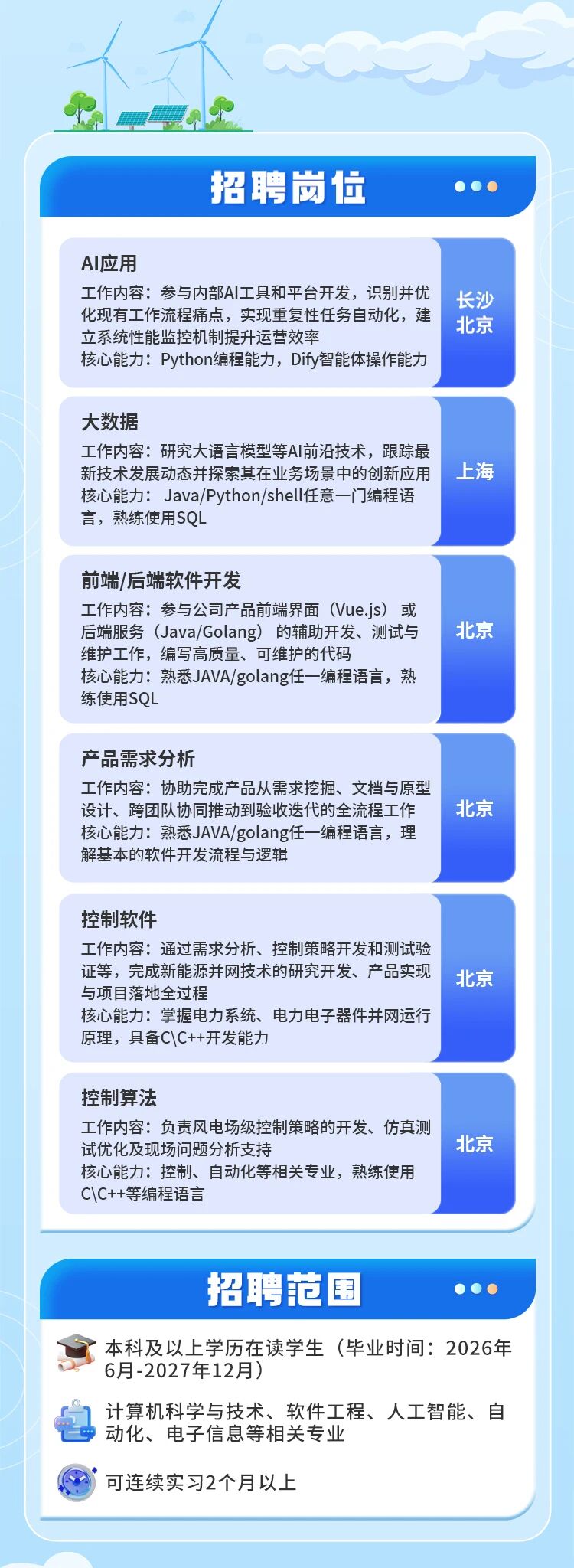[实习生] 三一重能实习生(智能化类)招聘