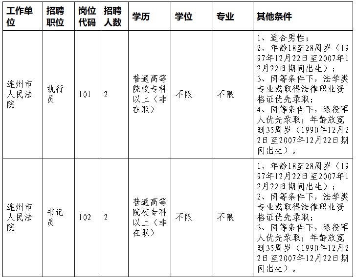 根据工作需要,经市政府同意,按照公平、公开、公正、竞争、择优的原则,连州市人民法院现委托由连州市金桥社会服务有限公司面向社会进行公开招聘。现将有关事项公告如下: