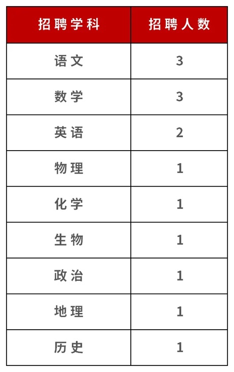因发展需要,学校2026年继续面向全国招聘高中各学科优秀教师,具体招聘学科及人数如下: