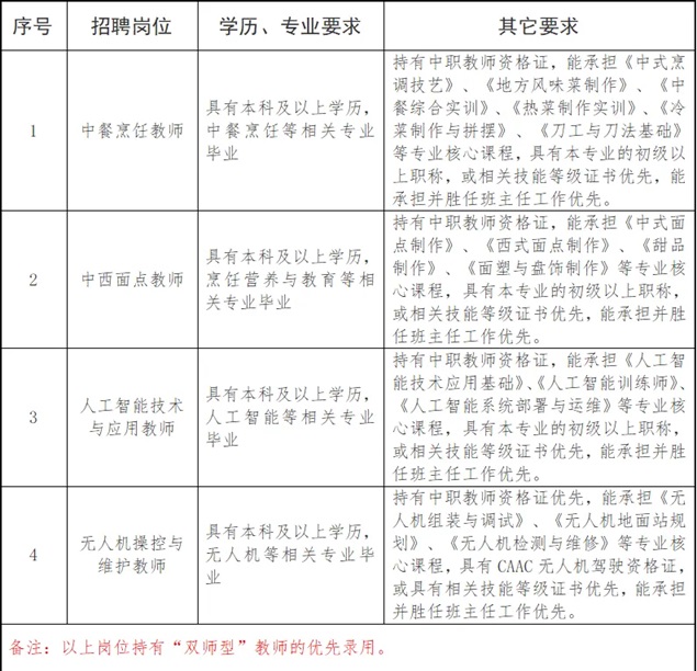 揭阳市理工职业技术学校成立于2023年,是经揭阳市教育局批准成立的一所全日制中等职业学校。学校位于揭阳市榕城区砲台镇,地处潮汕三市交界的核心区,距离揭阳潮汕国际机场约8公里,国道和高速公路四通八达,交通十分便利,校园风景秀丽,教室宽敞明亮,实训设备先进,教学、实训和运动区域,配套一应俱全。学校现开设计算机应用、电子商务、中西面点、幼儿保育、数字媒体技术、艺术设计与制作、无人机操控与维护7个专业。因学校发展需要,为进一步推进“人才强校”战略,做好人才储备,现面向社会公开招聘教师,现将有关事项公告如下:
