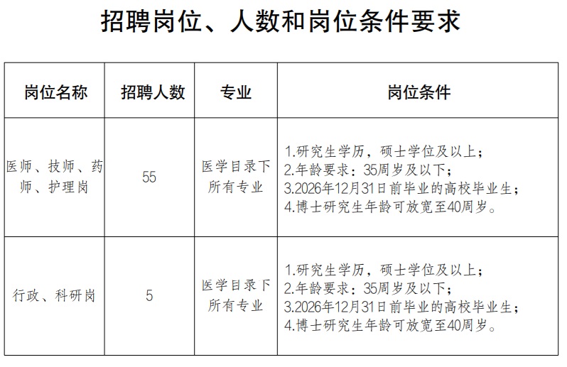 因工作需要,医院拟面向社会编外招聘以下岗位,公告如下: