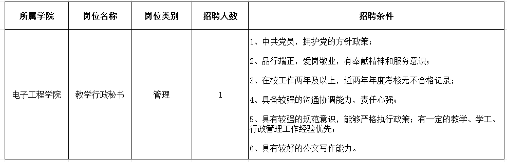 因工作需要,信息工程学院拟在全体教职工(不含劳务派遣、劳务协议、工勤岗等)中公开招聘1名工作人员。
