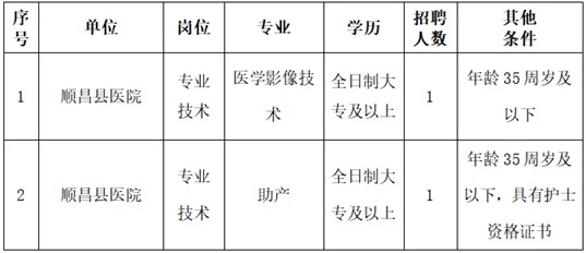[医护] 顺昌县总医院公开招聘2名编外人员