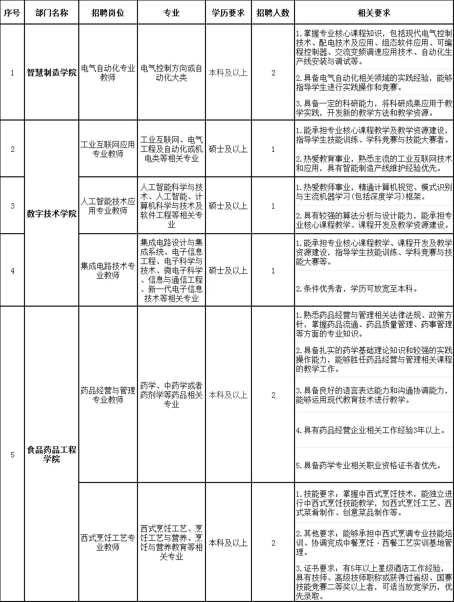原标题:●泉州轻工职业学院2025年秋季招聘计划