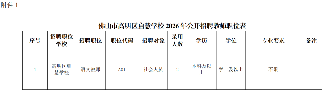 1、佛山市高明区启慧学校2026年公开招聘教师职位表 .docx