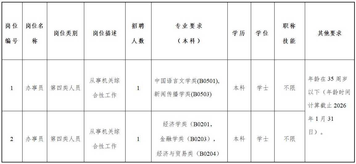 根据工作需要,东莞市政协办公室拟自主招聘工作人员2名。根据《东莞市机关事业单位招聘聘用人员管理办法》有关规定,现将有关事项公告如下: