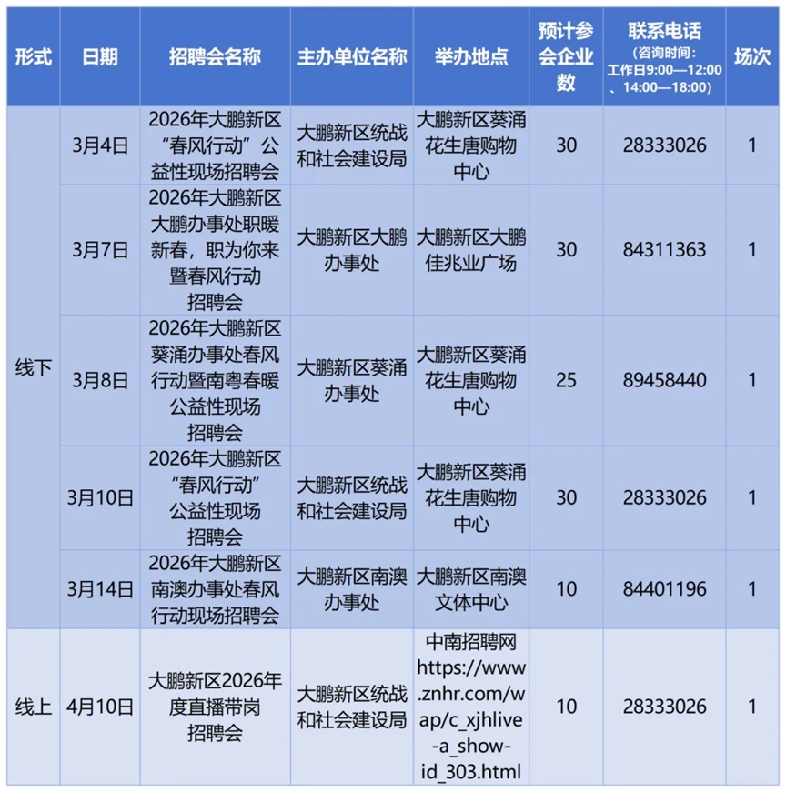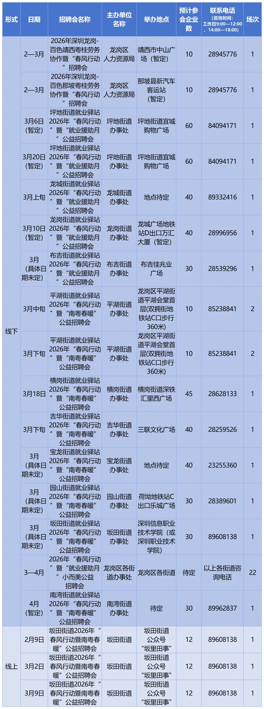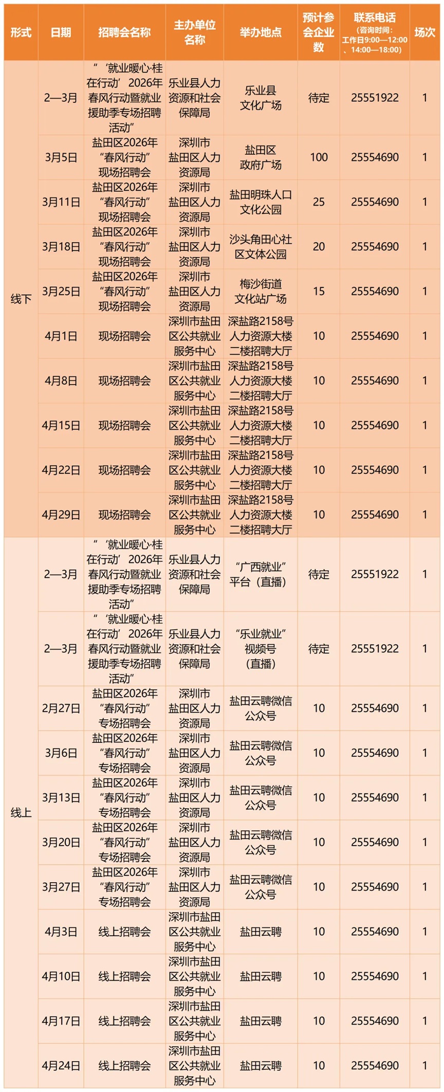 深圳各级公共就业服务机构春风行动暨南粤春暖专项招聘会