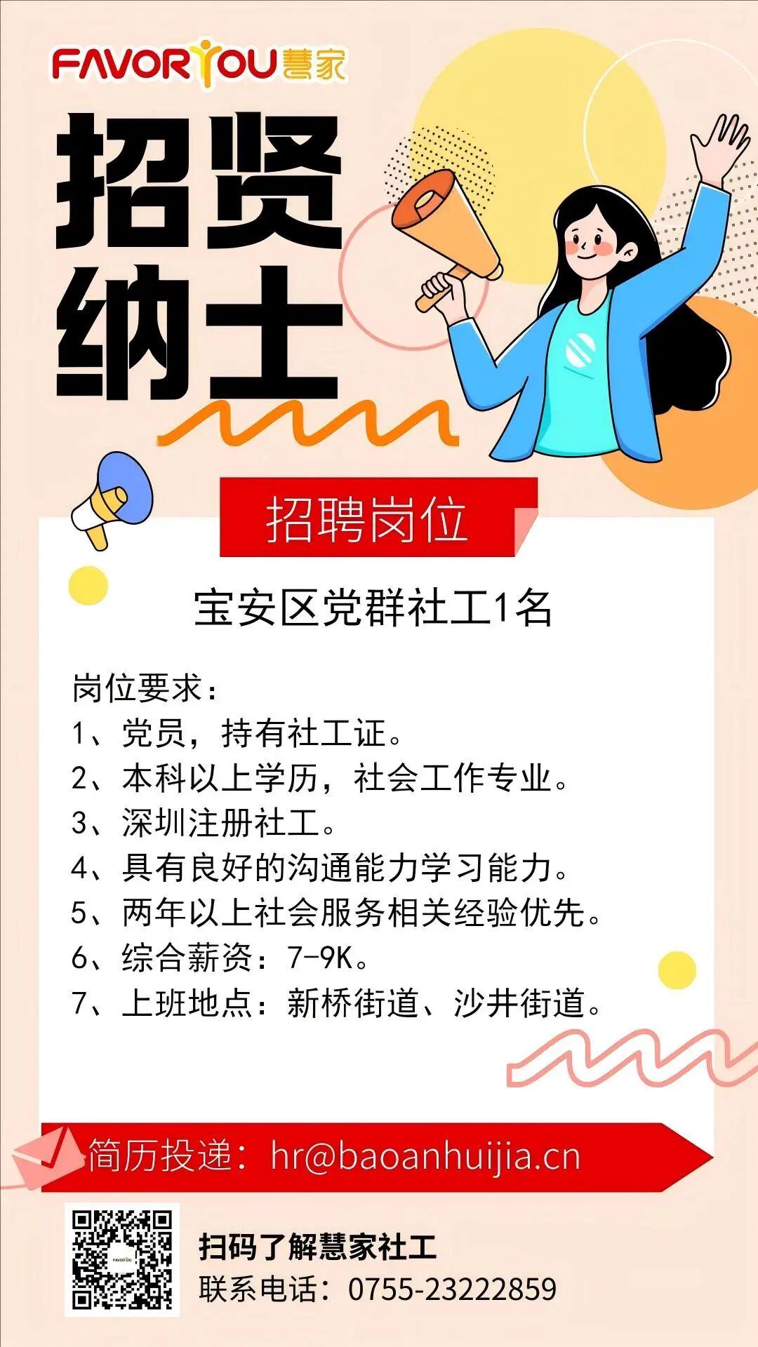 请将简历发送到邮箱【hr@baoanhuijia.cn】